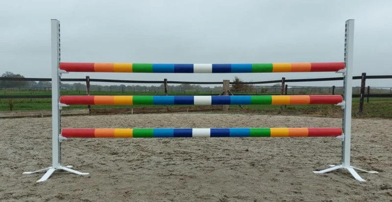 Sommige paarden vinden bepaalde kleuren lastiger in te schatten, bijvoorbeeld door contrast of lichtinval. Daarom is het slim om niet altijd dezelfde balk bovenop te leggen.